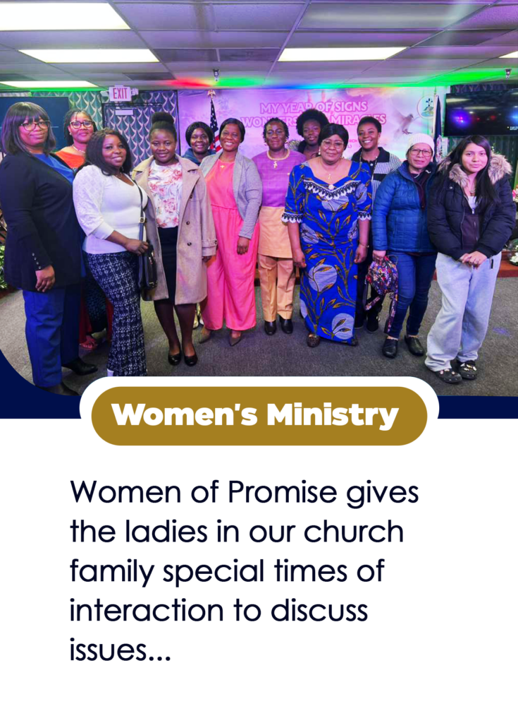 Mrs. Gertrude Kotei, lovingly known as Mommy Gertrude, has devoted more than 20 years to faithful service in God’s kingdom. Her passion for the Lord is evident in her steadfast commitment, compassionate spirit, and dedication to the mission of the church. She plays a vital role in uniting members, nurturing fellowship, and leading the Women’s Ministry with grace and purpose. Her leadership continues to inspire women and strengthen the heart of the church.